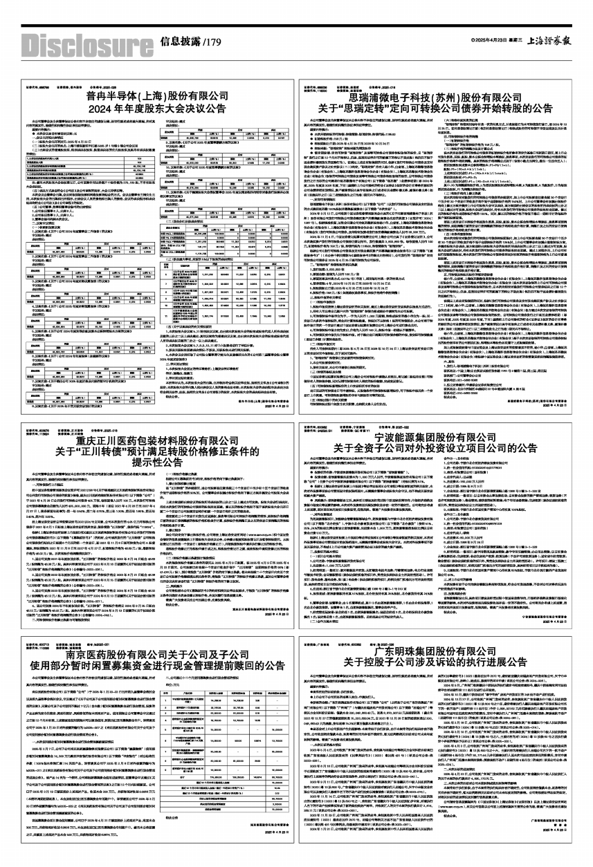 根据公司《发行可转换公司债券及支付现金购买资产并募集配套资金报告书》(以下简称“《重组报告书》”)(本公告中相关简称与《重组报告书》的释义内容相同),公司发行的“思瑞定转”定向可转换公司债券自2025年4月25日起可转换为公司股份。