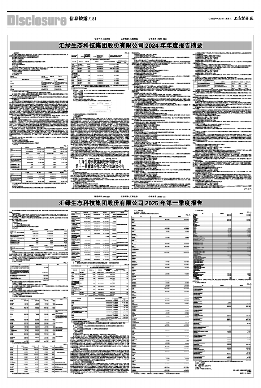 汇绿生态科技集团股份有限公司2024年年度报告摘要