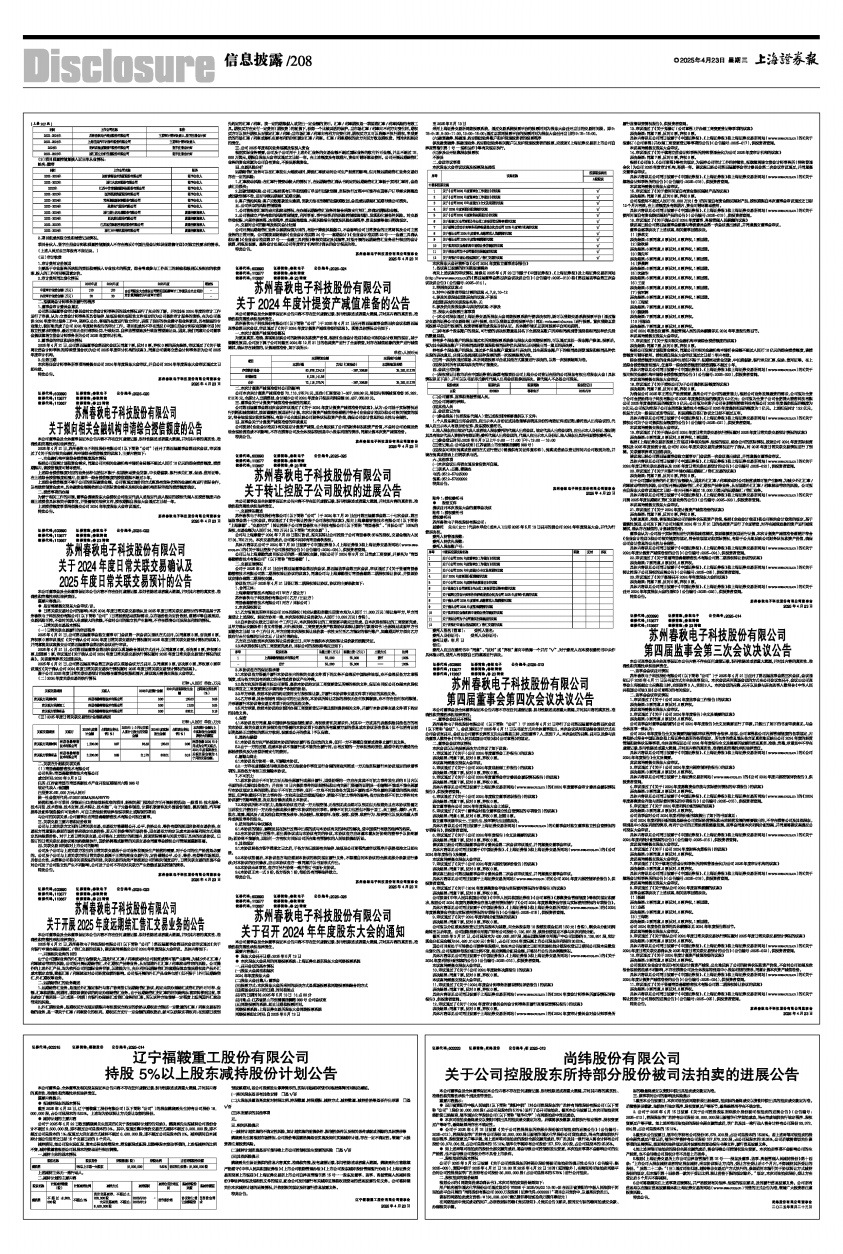 苏州春秋电子科技股份有限公司(以下简称“公司”)于2025年4月21日召开了第四届监事会第三次会议,会议通知已于2025年4月11日以书面方式向全体监事发出。本次会议采用现场会议的方式在公司会议室召开,会议由公司监事会主席杨超女士召集和主持,应到监事3人,实到3人。本次会议的召集、召开以及参与表决监事人数符合《中华人民共和国公司法》及《公司章程》的有关规定。