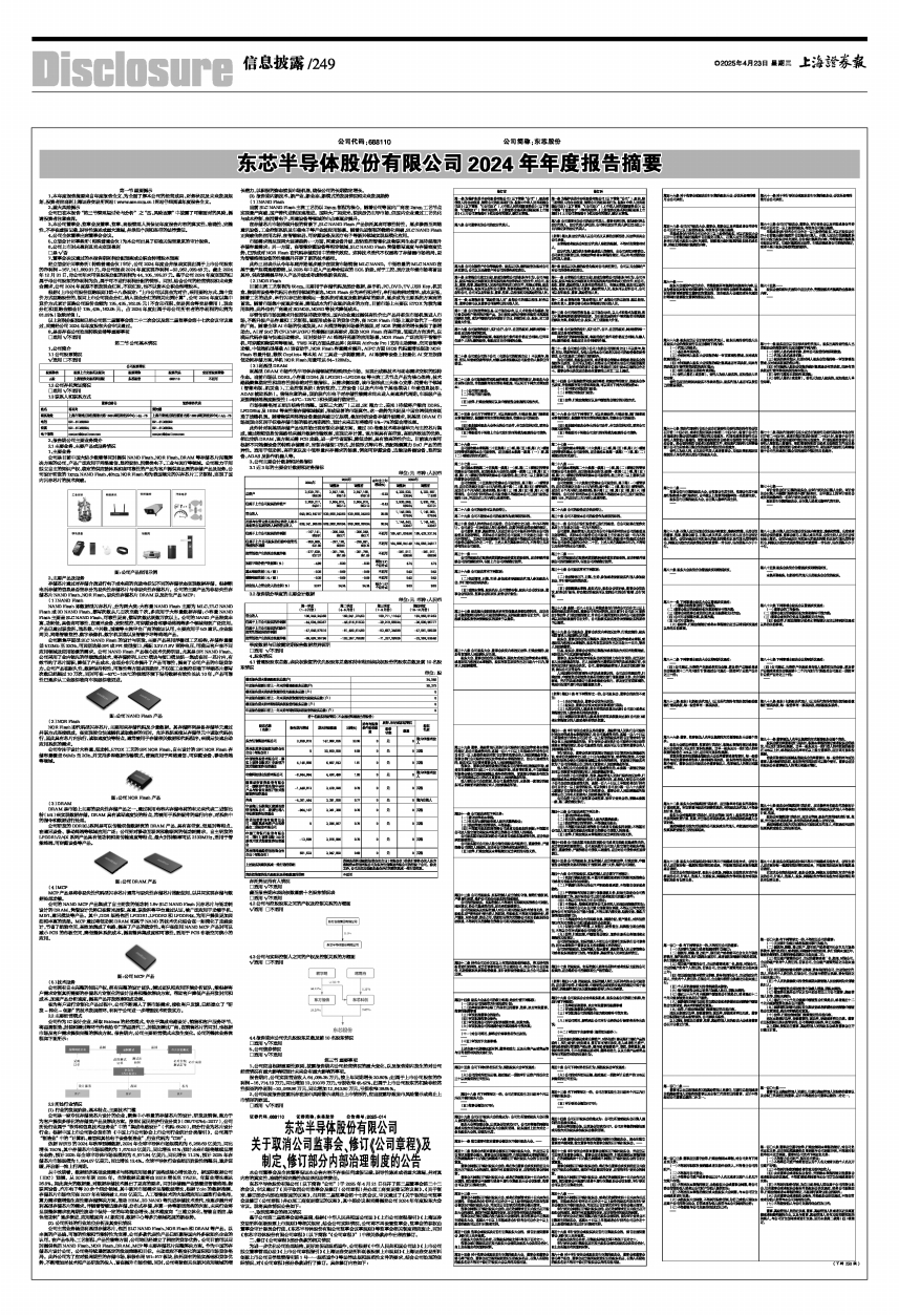 东芯半导体股份有限公司(以下简称“公司”)于2025年4月21日召开了第二届董事会第二十二次会议,审议通过了《关于取消公司监事会及修订〈公司章程〉并办理工商变更登记的议案》、《关于制定、修订部分内部治理制度的议案》,召开第二届监事会第十七次会议,审议通过了《关于取消公司监事会及修订〈公司章程〉并办理工商变更登记的议案》,其中部分议案尚需提交公司2024年年度股东大会审议。现将具体情况公告如下: