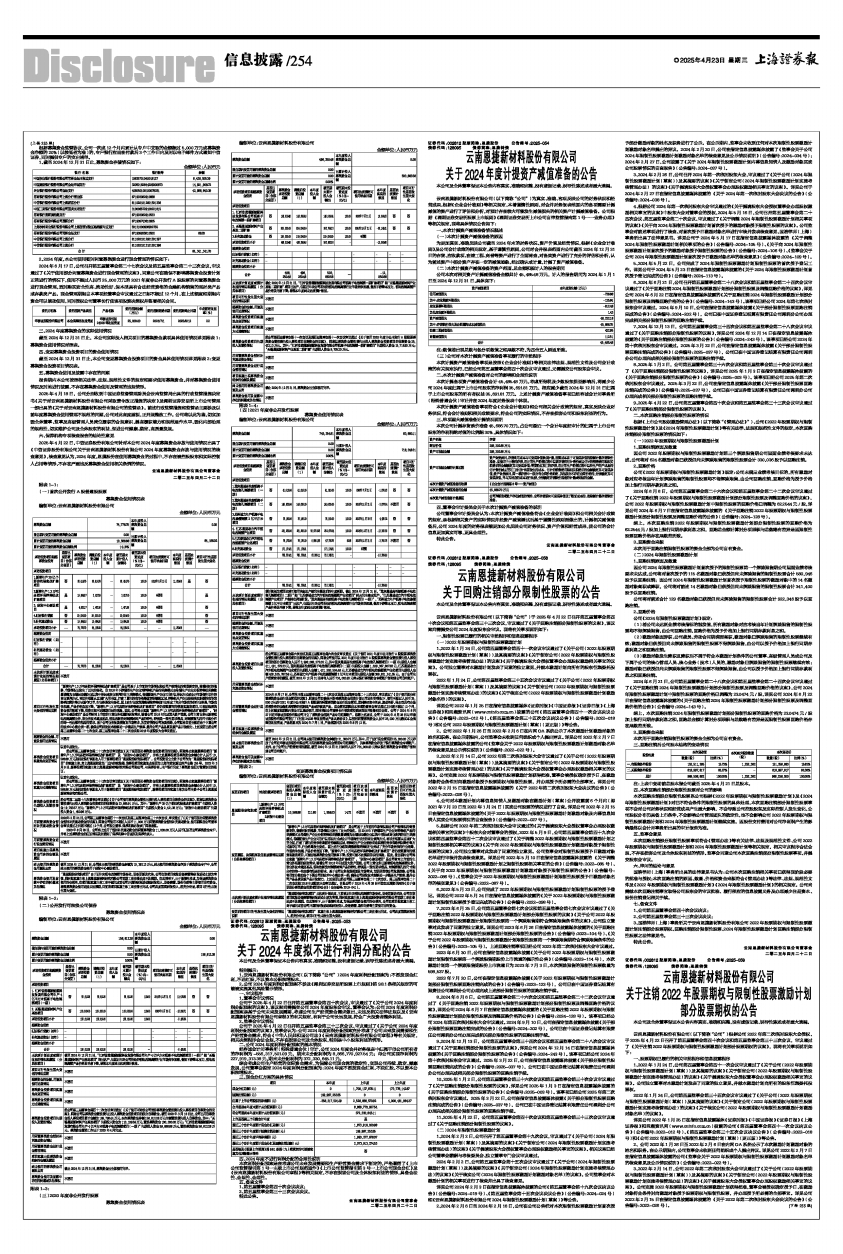 1、云南恩捷新材料股份有限公司(以下简称“公司”)2024年度利润分配预案为:不派发现金红利,不送红股,不以资本公积转增股本。