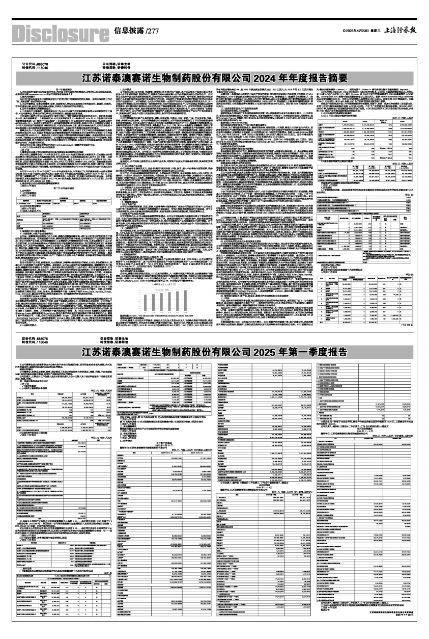 江苏诺泰澳赛诺生物制药股份有限公司2025年第一季度报告