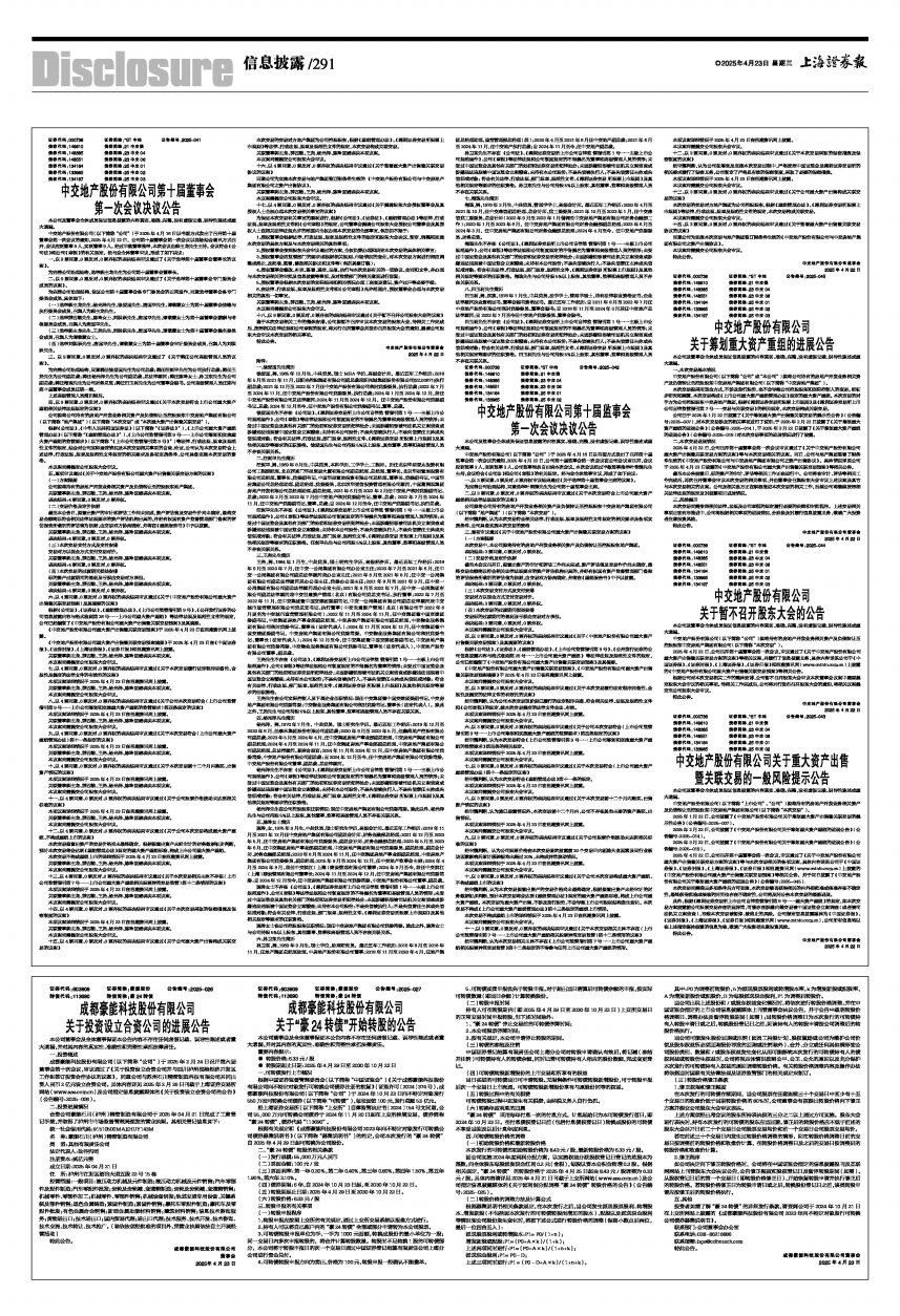 《中交地产股份有限公司重大资产出售暨关联交易预案》、《中交地产股份有限公司重大资产出售暨关联交易预案摘要》于2025年4月23日在巨潮资讯网上披露。