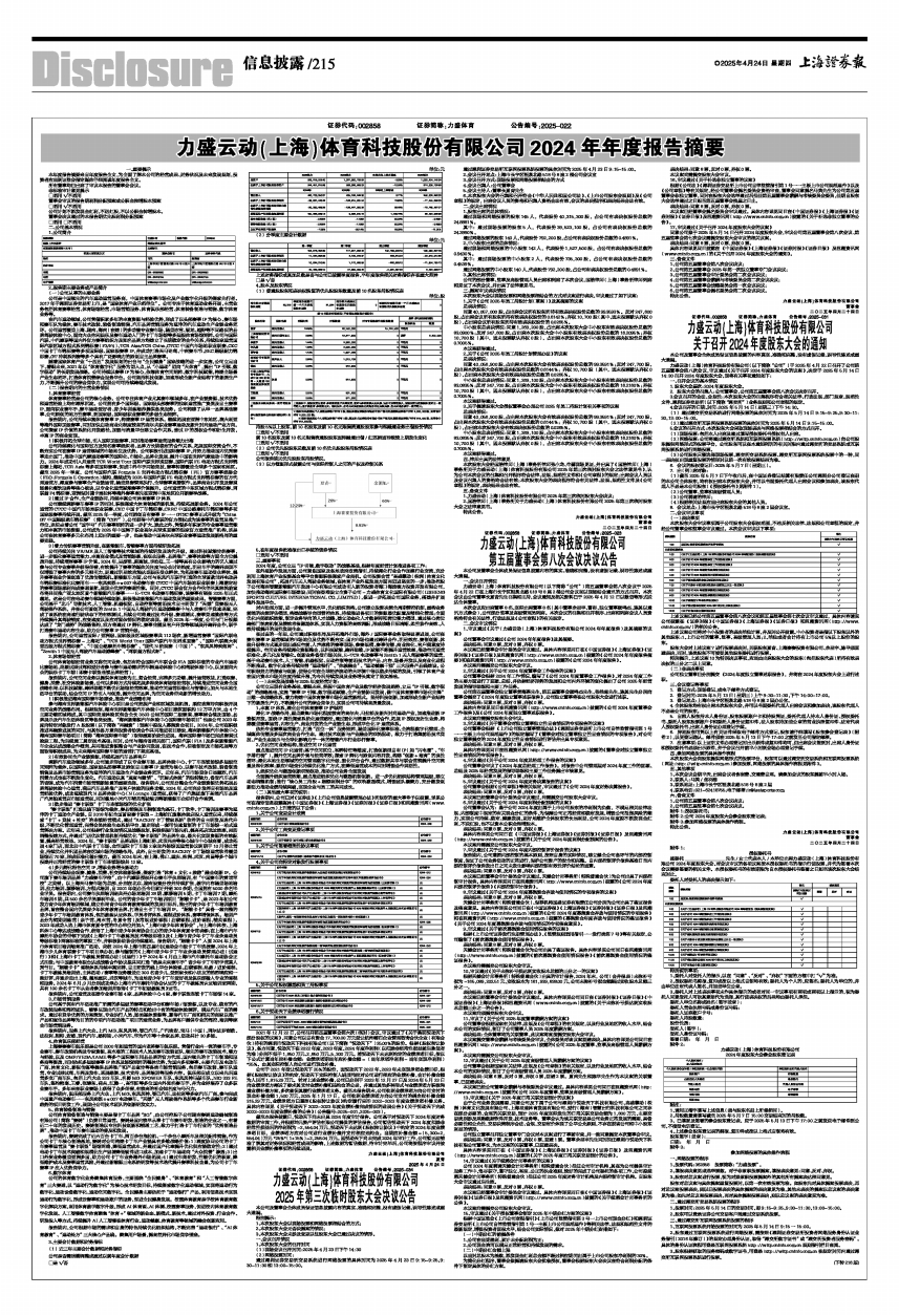 力盛云动(上海)体育科技股份有限公司2024年年度报告摘要