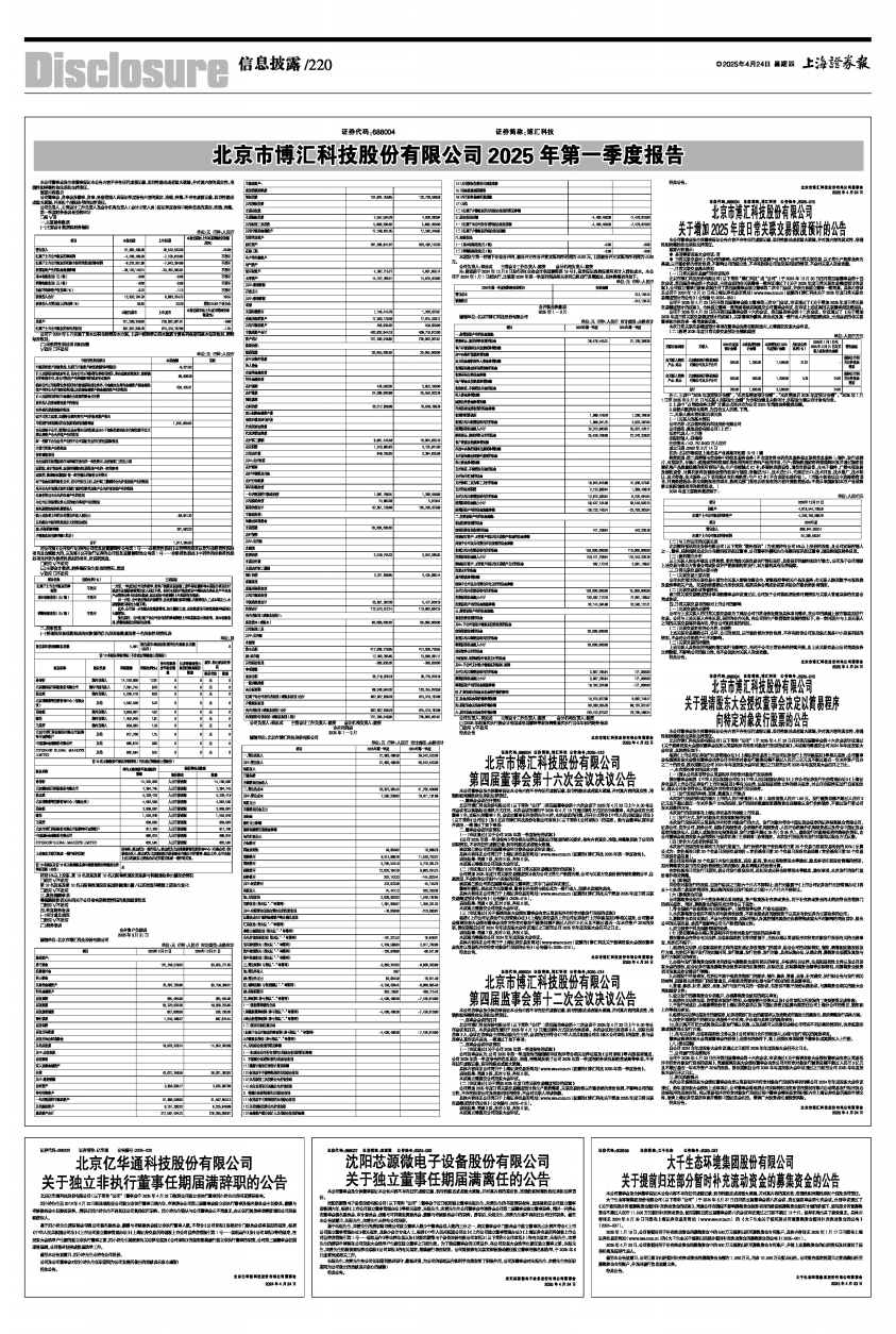 具体内容详见公司同日于上海证券交易所网站(www.sse.com.cn)披露的《博汇科技2025年第一季度报告》。