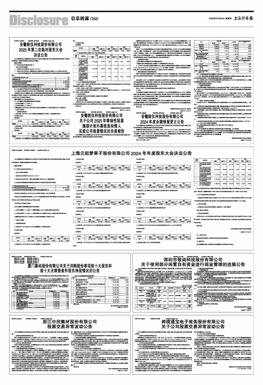 根据《上市公司股份回购规则》《上海证券交易所上市公司自律监管指引第7号一一回购股份》等有关规定,现将回购股份董事会会议决议公告前一个交易日(2025年4月16日)登记在册的前十大股东和前十大无限售条件股东的名称及持股数量、比例情况公告如下: