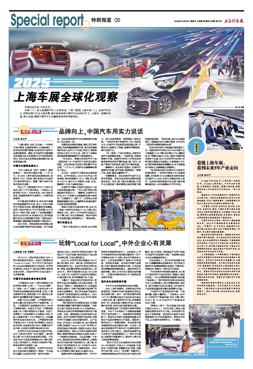 4月24日,上海证券报记者在2025上海车展现场采访发现,本地生产配套供应(Local for Local)对于汽车产业企业而言,已从成本策略转变为生存法则。如何在区域研发、本地生产、就近供应等方面形成本地化闭环,对国内外汽车企业已成为一大突围命题。
