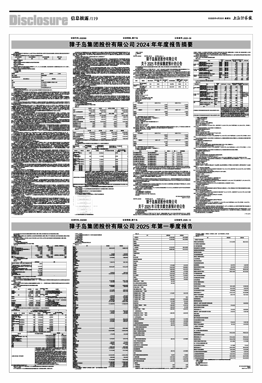 证券代码:002069 证券简称:獐子岛 公告编号:2025-09
