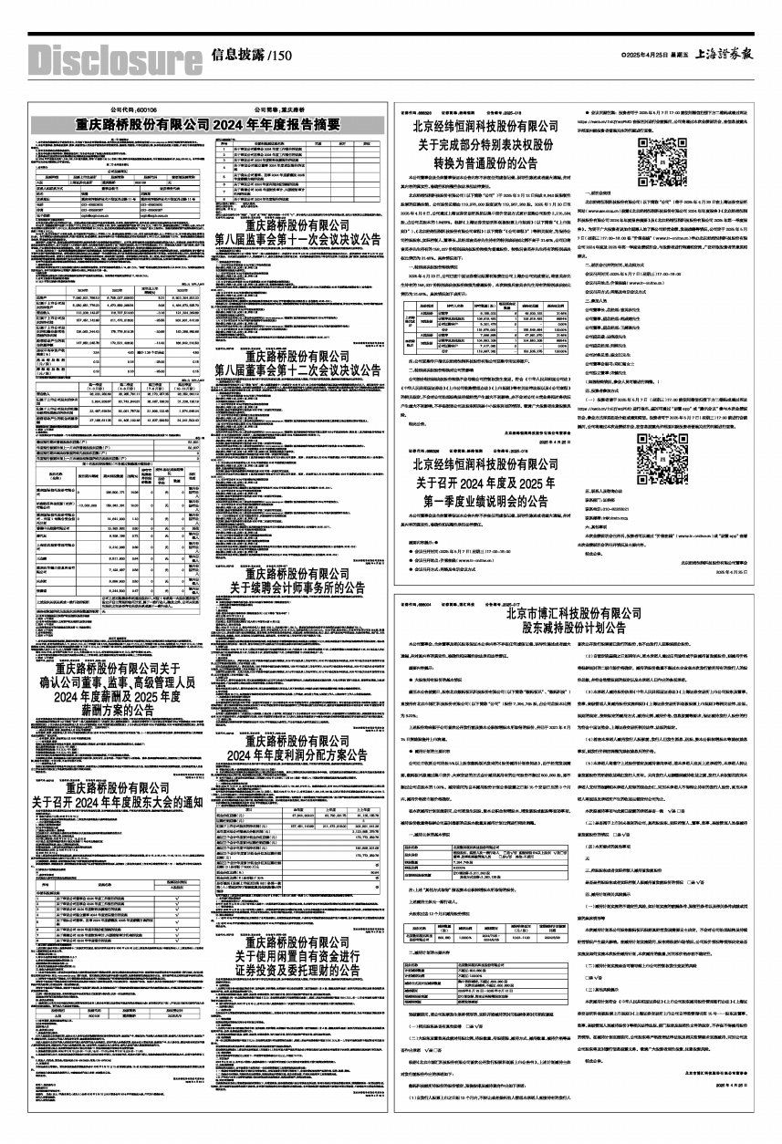 具体内容详见公司同日披露的《重庆路桥股份有限公司关于召开2024年年度股东大会的通知》(公告编号:2025-009)