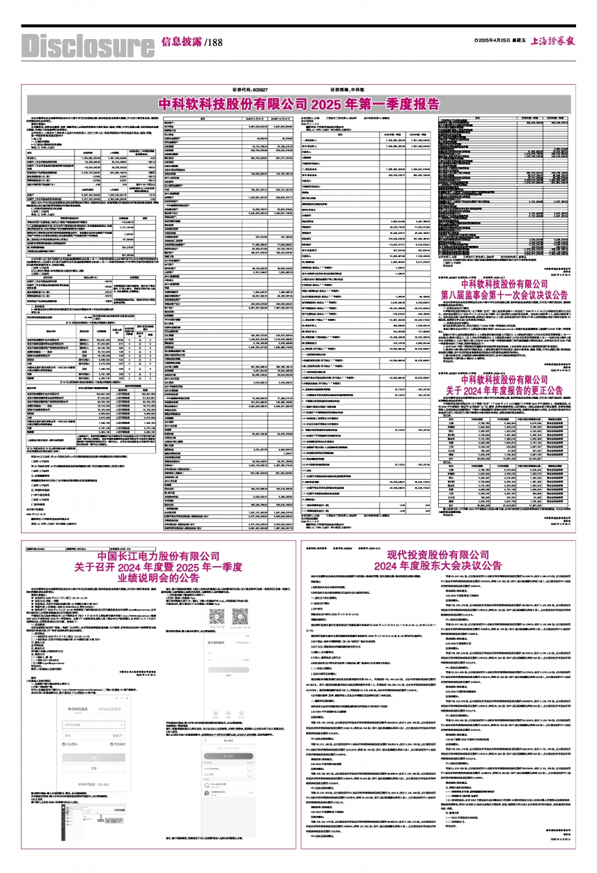 中科软科技股份有限公司(以下简称“公司”)第八届监事会第十一次会议于2025年4月24日以现场结合通讯方式召开。本次会议通知已于2025年4月18日以电子邮件、专人送达等方式送达各位监事。会议应出席监事3人,实际出席监事3人。本次会议由第八届监事会召集,监事会主席张正女士主持,本次会议的召开符合《中华人民共和国公司法》等有关法律、行政法规、规范性文件以及《公司章程》的规定。