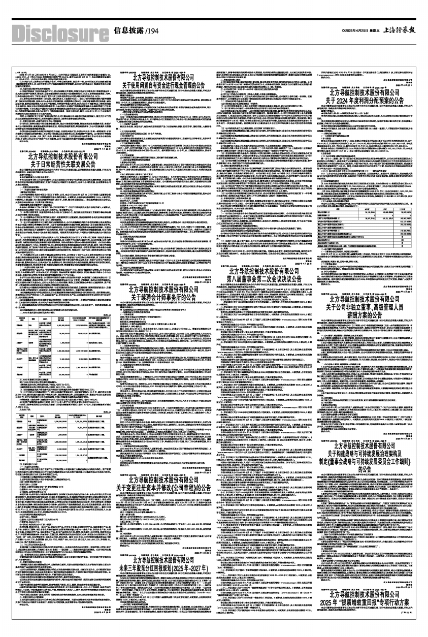 北方导航控制技术股份有限公司(以下简称:公司、本公司)2025年4月23日召开的第八届董事会第二次会议审议通过了《关于日常经营性关联交易的议案》。4票赞成,占有效表决权总数的100%,0票反对,0票弃权,4票回避(共4位关联董事李海涛、胡小军、周静、陶立春回避表决)。本议案需提交股东会审议,关联股东将在股东会上对该议案回避表决。