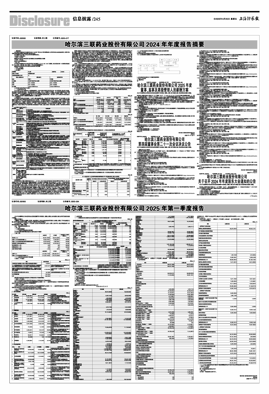 哈尔滨三联药业股份有限公司2025年第一季度报告