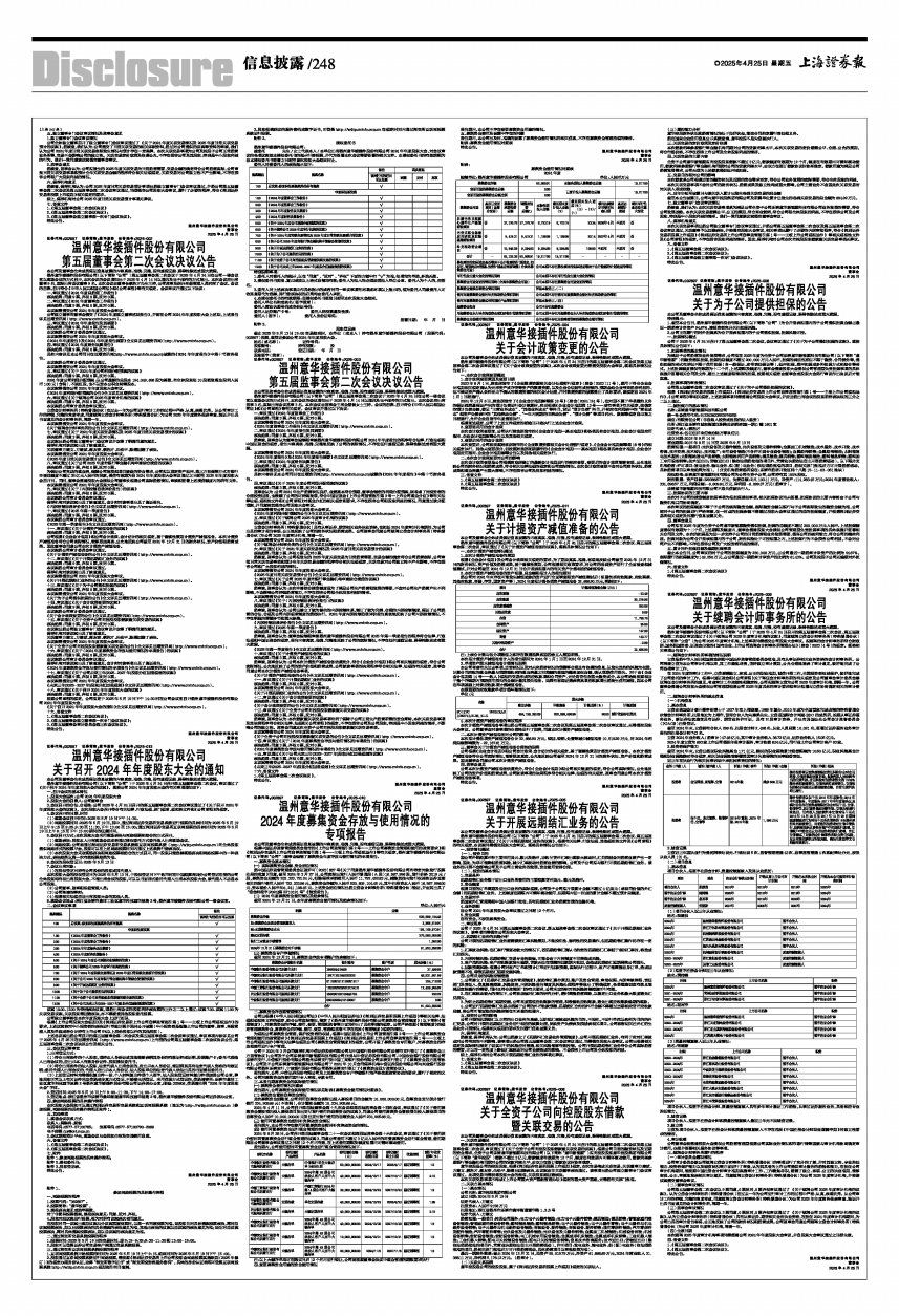 按照公司章程的规定,公司拟定于 2025年5月19日下午14:30时在公司会议室召开温州意华接插件股份有限公司2024年年度股东大会。