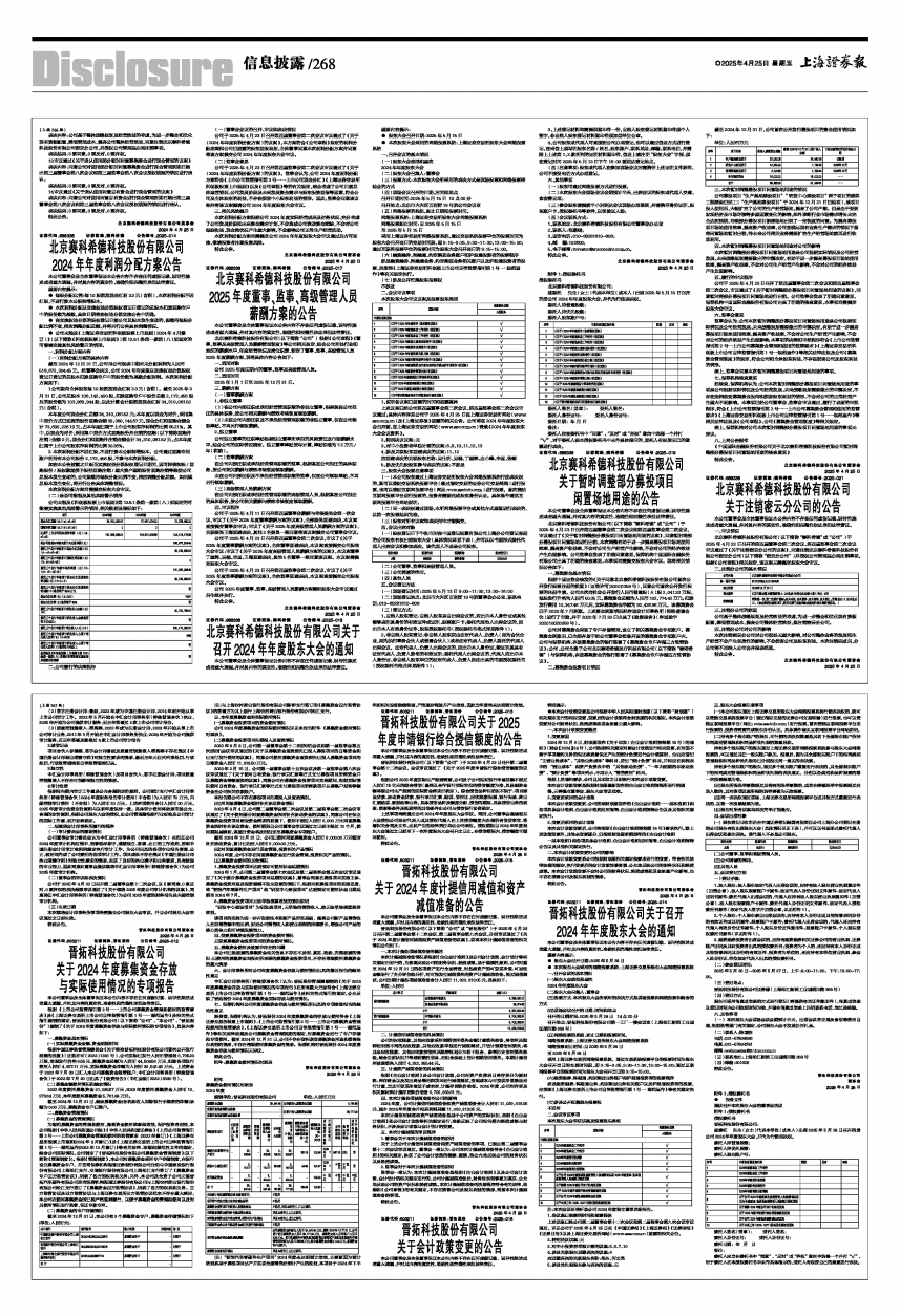 北京赛科希德科技股份有限公司(以下简称“赛科希德”或“公司”)于2025年4月23日召开第四届董事会第二次会议和第四届监事会第二次会议,审议通过了《关于暂时调整部分募投项目闲置场地用途的议案》,同意暂时将部分募投项目闲置场地进行出租,本次调整有助于进一步提高募投项目场地使用效率,提高资产收益率,不会对公司生产经营产生影响,不会对公司的经济效益产生负面影响。公司监事会发表了明确同意意见,保荐机构中国国际金融股份有限公司出具了明确的核查意见,本事项尚需提交股东大会审议。现将相关情况公告如下: