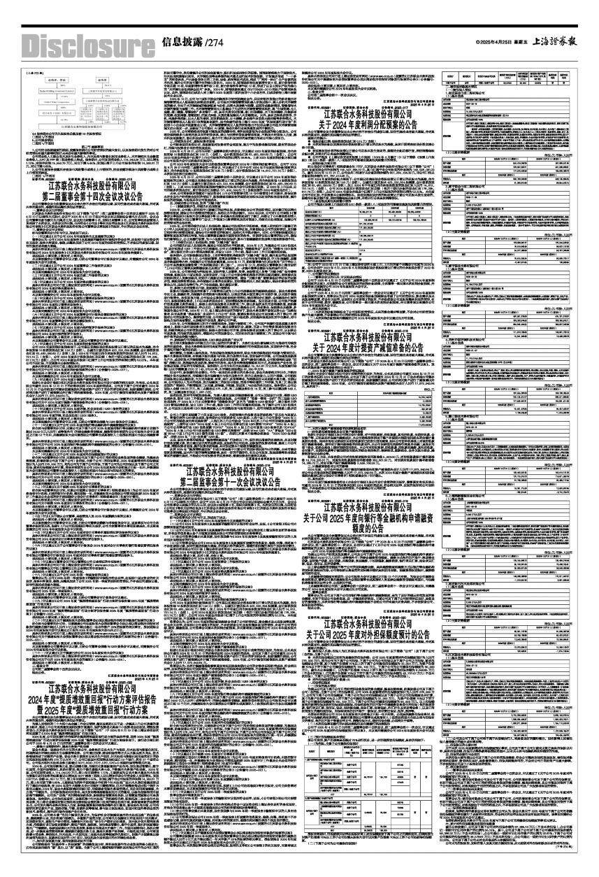 具体内容详见公司同日在上海证券交易所网站(www.sse.com.cn)披露的《江苏联合水务科技股份有限公司2024年年度报告》《江苏联合水务科技股份有限公司2024年年度报告摘要》。