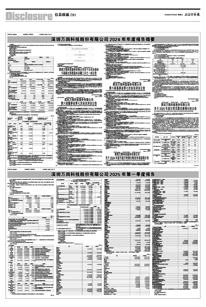 《深圳万润科技股份有限公司2024年年度报告摘要》详见《证券时报》《中国证券报》《上海证券报》《证券日报》及巨潮资讯网(www.cninfo.com.cn);《深圳万润科技股份有限公司2024年年度报告》详见巨潮资讯网(www.cninfo.com.cn)。