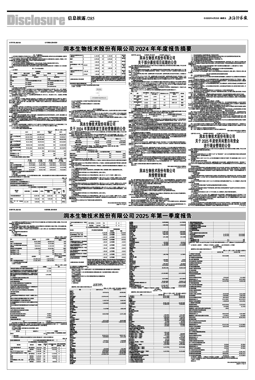 根据上海证券交易所《上海证券交易所上市公司自律监管指引第 3 号行业信息披露:第十三号一一化工》的要求,现将润本生物技术股份有限公司(以下简称“公司”)2024年第四季度主要经营数据披露如下:
