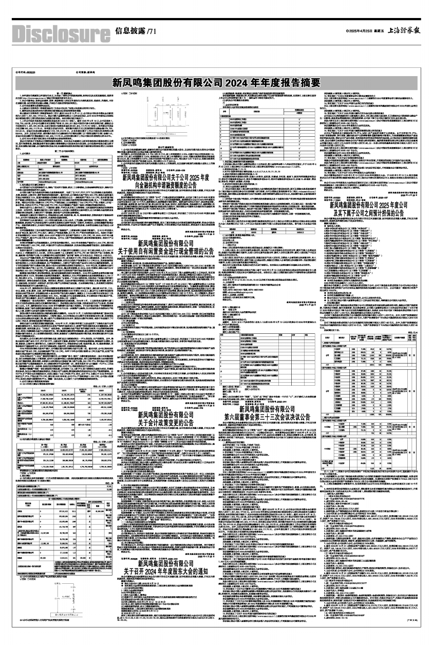 新凤鸣集团股份有限公司(以下简称“公司”)于2025年4月24日召开了第六届董事会第三十三次会议,审议通过了《关于公司2025年度使用自有闲置资金进行现金管理的议案》。为提高资金使用效率,降低财务费用,在保证公司日常经营运作等各种资金需求的前提下,同意公司(含下属各级全资或控股子公司)使用最高额度不超过人民币500,000万元的自有资金进行现金管理,购买流动性高、低风险和期限短的理财产品、国债逆回购等。以上投资期限有效期为自公司董事会审议通过之日起12个月内。在上述额度内,资金可以滚动使用。董事会授权董事长在上述使用额度范围内,行使决策权及签署相关法律文件(包括在有关文件上加盖印章),并由公司管理层组织相关部门具体实施。