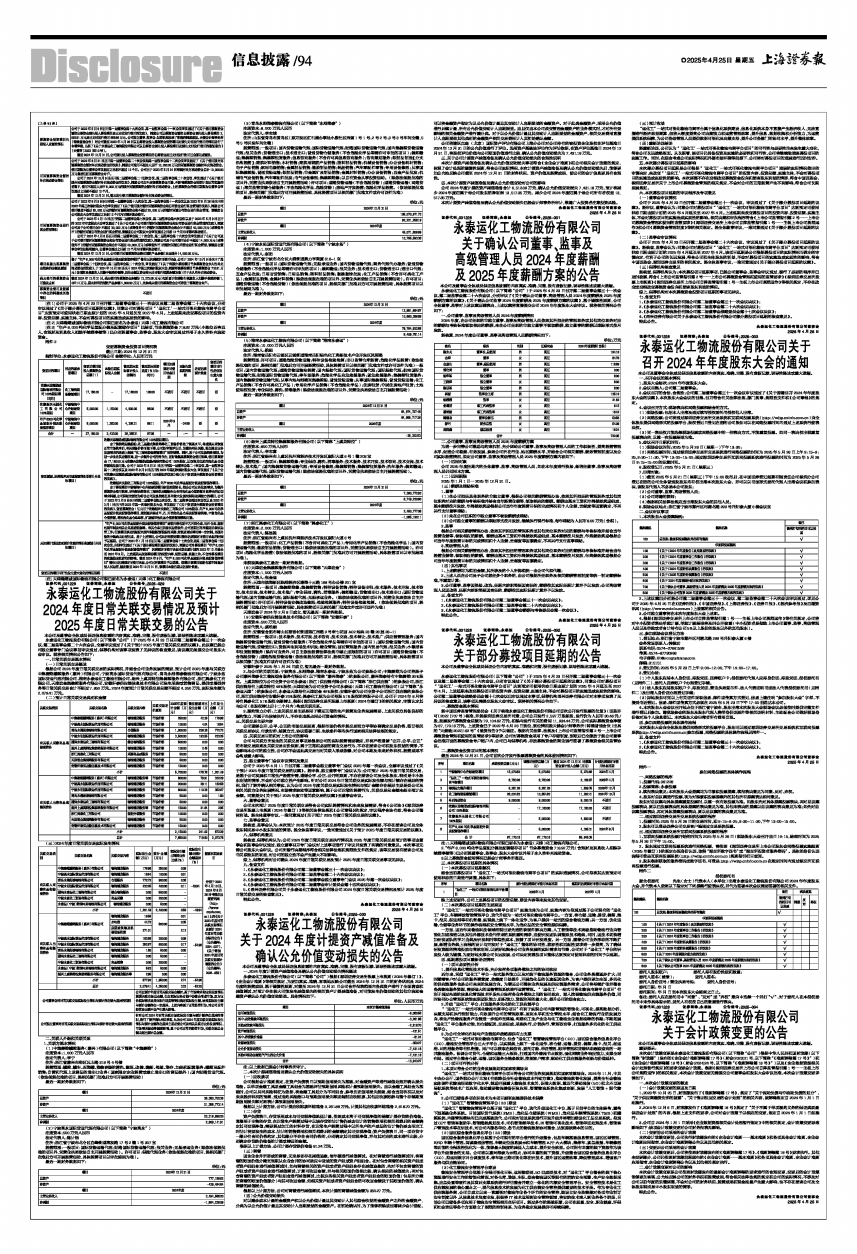 5、《甬兴证券有限公司关于永泰运化工物流股份有限公司2024年度日常关联交易情况及预计2025年度日常关联交易的核查意见》。
