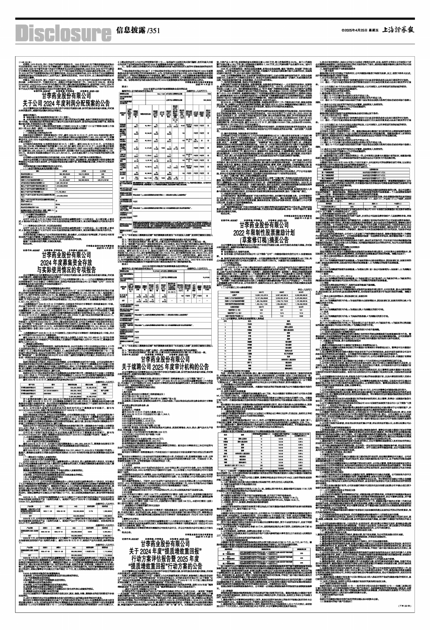 证券代码:603087 证券简称:甘李药业 公告编号:2025-022