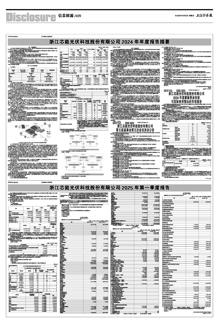 具体内容详见公司于同日披露的《浙江芯能光伏科技股份有限公司2025年第一季度报告》。