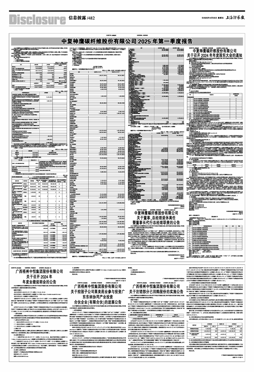 证券代码:688295 证券简称:中复神鹰 公告编号:2025-021