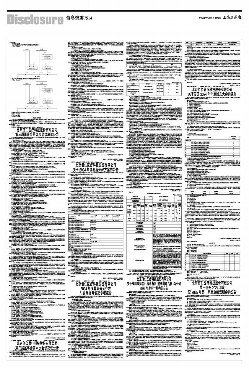 北京佰仁医疗科技股份有限公司(以下简称“公司”)第三届董事会第九次会议(以下简称“本次会议”)于2025年4月23日在北京市昌平区科技园东区华昌路2号公司会议室以现场与通讯表决相结合的方式召开,会议通知于2025年4月11日以邮件、电话等方式送达至公司全体董事。本次会议由公司董事长金磊先生召集和主持;会议应到董事9人,实到董事9人,公司监事及高级管理人员列席了会议。本次会议的召集和召开程序、出席会议人员的资格和表决程序均符合《中华人民共和国公司法》等法律法规及《北京佰仁医疗科技股份有限公司章程》(以下简称“《公司章程》”)的相关规定,会议形成的决议合法、有效。