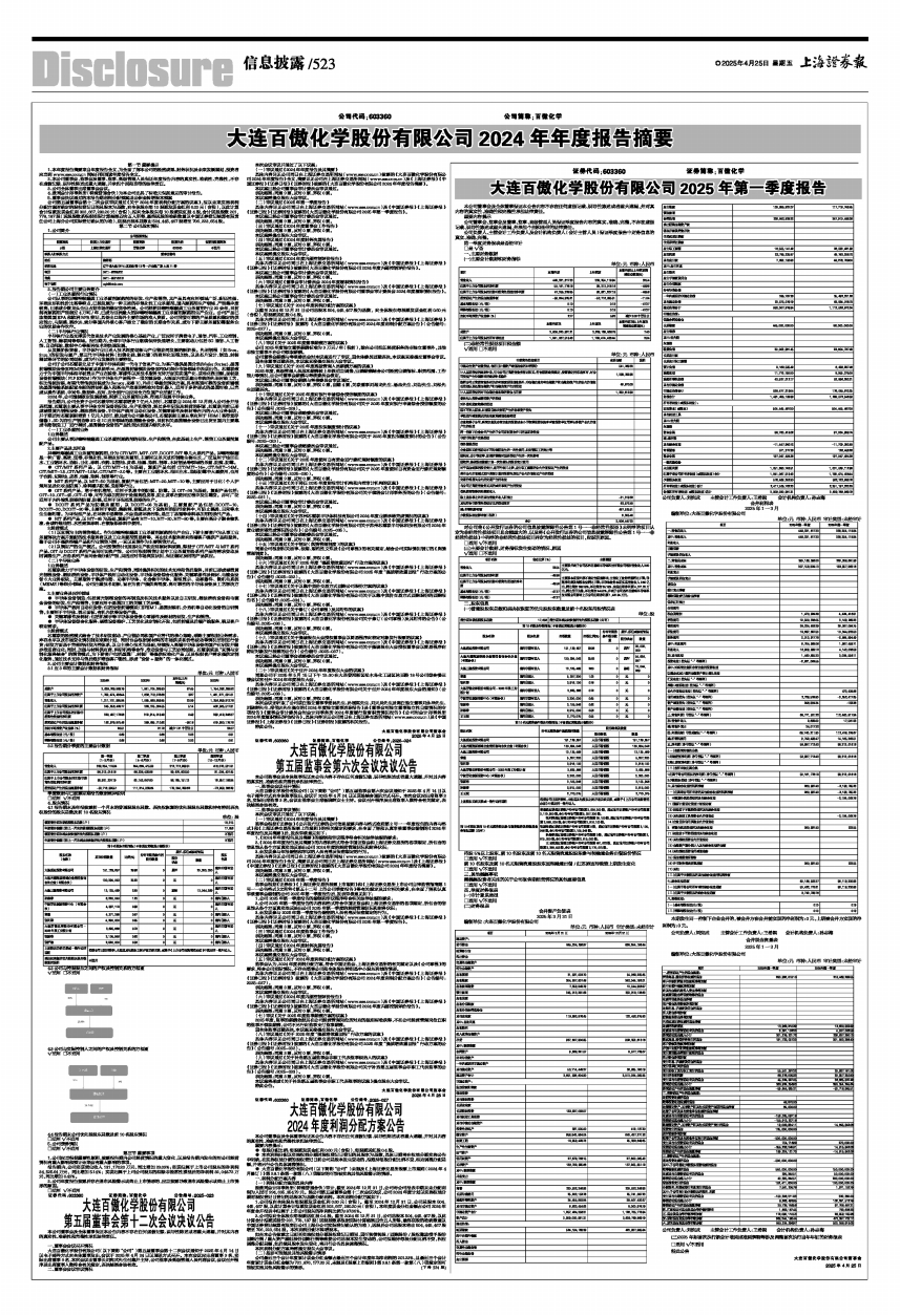 具体内容详见公司同日在上海证券交易所网站(www.sse.com.cn)及《中国证券报》《上海证券报》《证券日报》《证券时报》披露的《大连百傲化学股份有限公司2025年第一季度报告》。