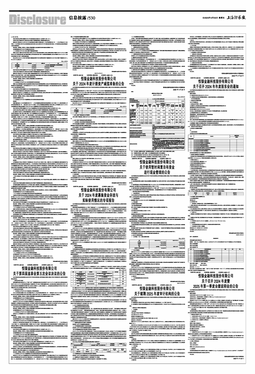 证券代码:603106 证券简称:恒银科技 公告编号:2025-016