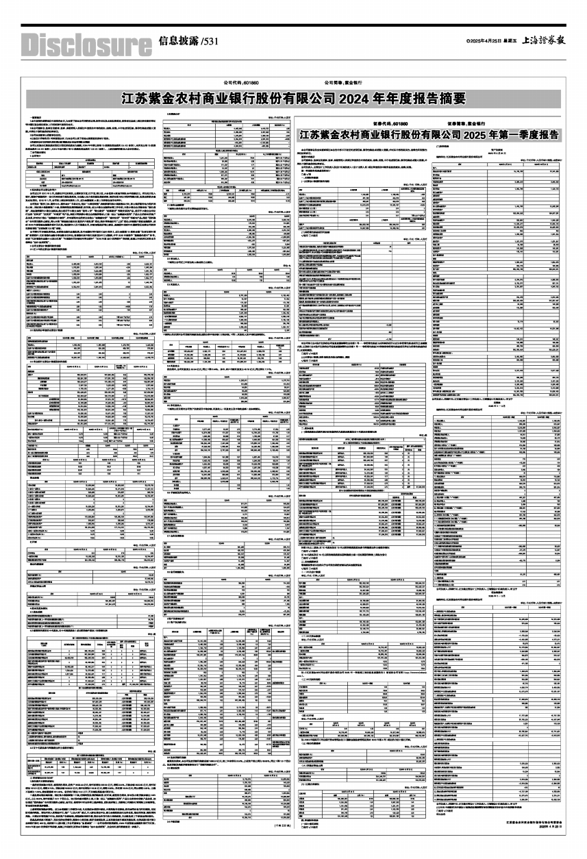江苏紫金农村商业银行股份有限公司2025年第一季度报告