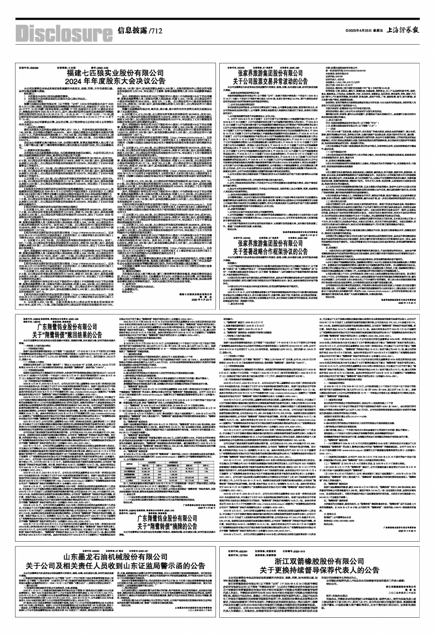 张家界旅游集团股份有限公司(以下简称“公司”)股票日均换手率连续1个交易日(2025年4月24日)与前5个交易日日均换手率比值达160.96倍,且累计换手率达24.79%,属于《深圳证券交易所交易规则》规定的股票交易异常波动的情况。
