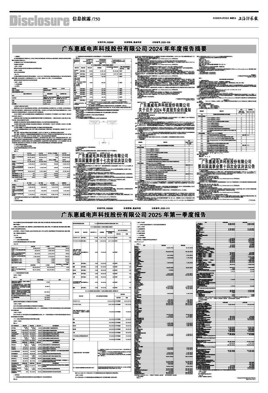 1、广东惠威电声科技股份有限公司(以下简称“公司”)第四届董事会第十七次会议通知于2025年4月14日以邮件、传真及专人送达等方式发出。
