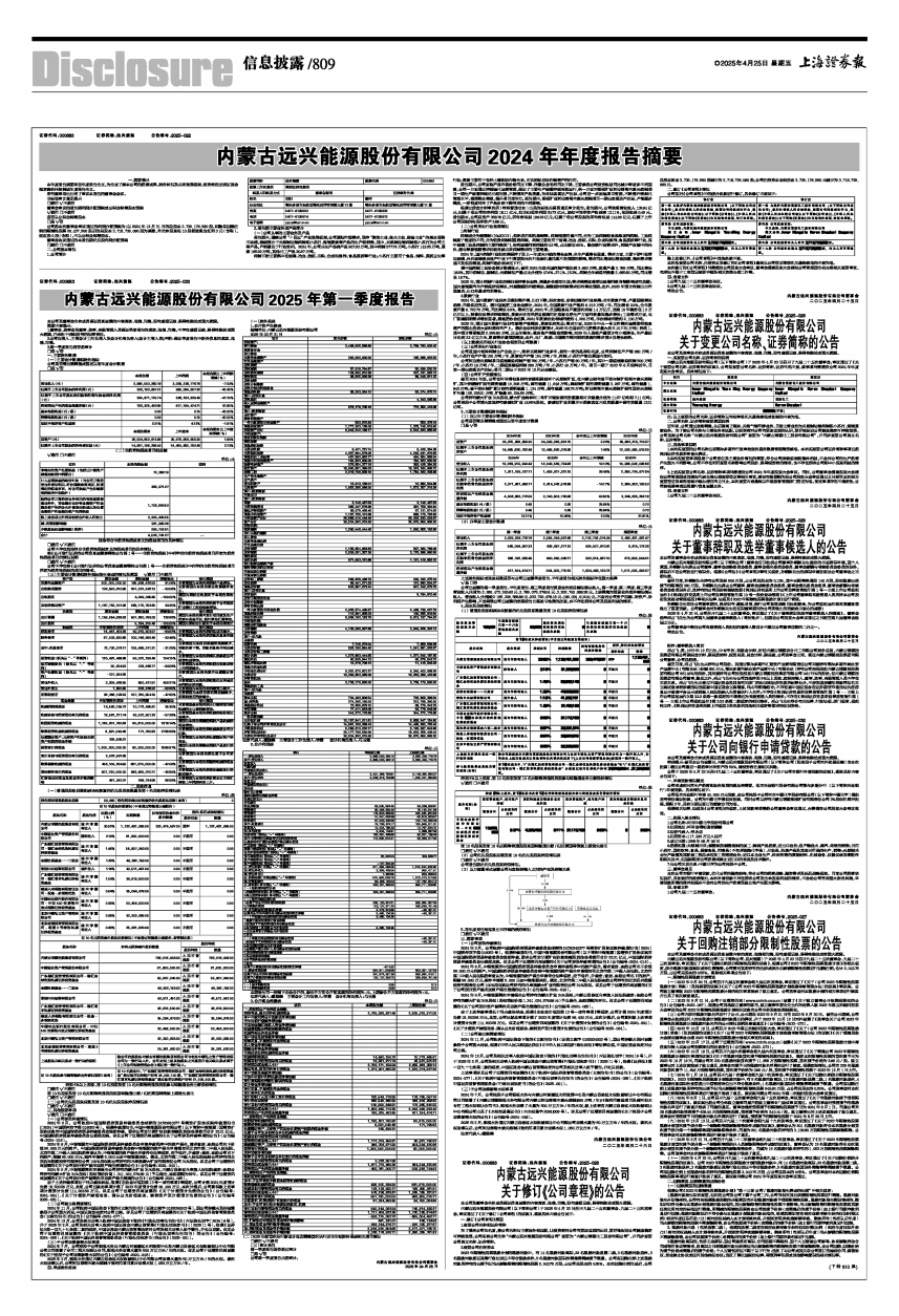 内蒙古远兴能源股份有限公司2025年第一季度报告