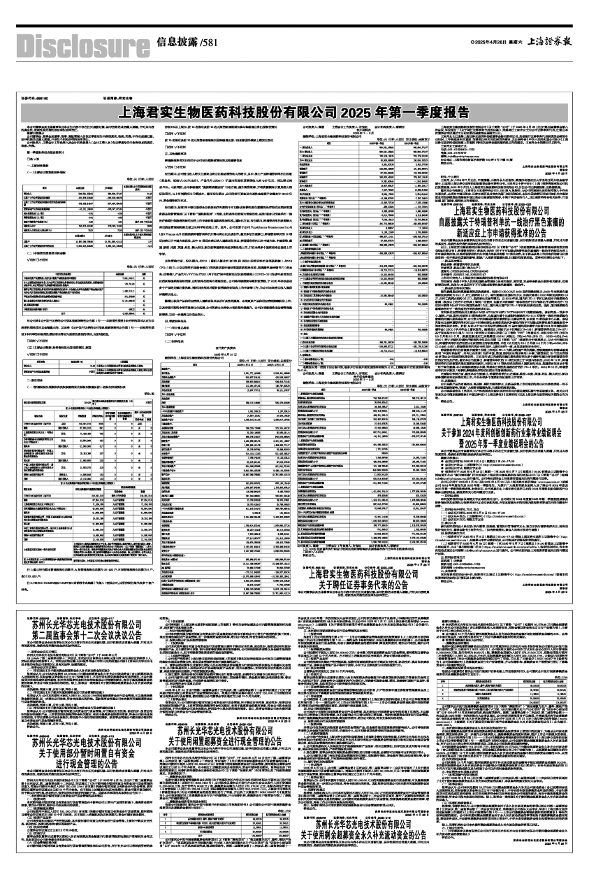 上海君实生物医药科技股份有限公司2025年第一季度报告