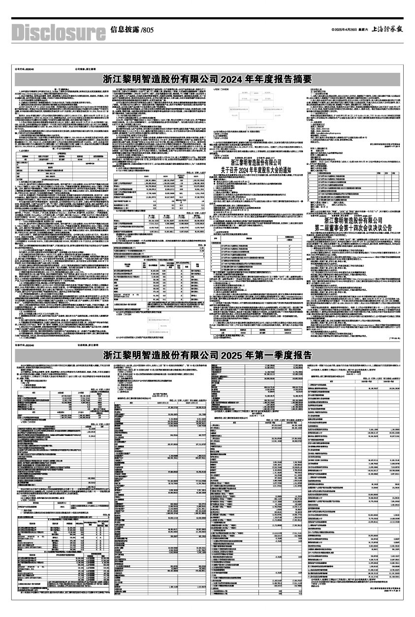 具体内容详见公司同日在上海证券交易所网站(http://www.sse.com.cn)和公司指定信息披露媒体披露的《浙江黎明智造股份有限公司2024年年度报告》、《浙江黎明智造股份有限公司2024年年度报告摘要》(公告编号:2025-009)