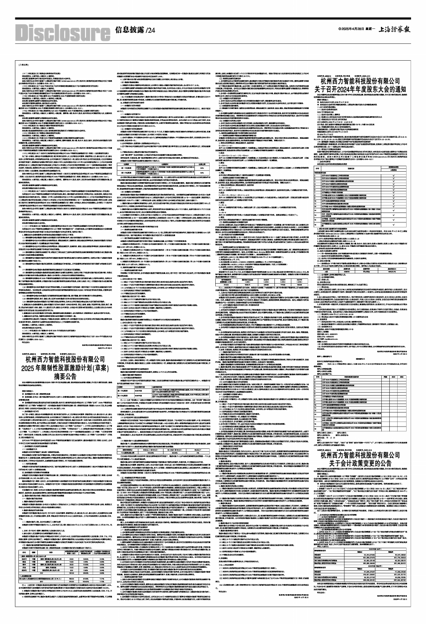 具体内容详见公司同日披露于上海证券交易所网站的《杭州西力智能科技股份有限公司关于召开2024年年度股东大会的通知》(公告编号:2025-015)。