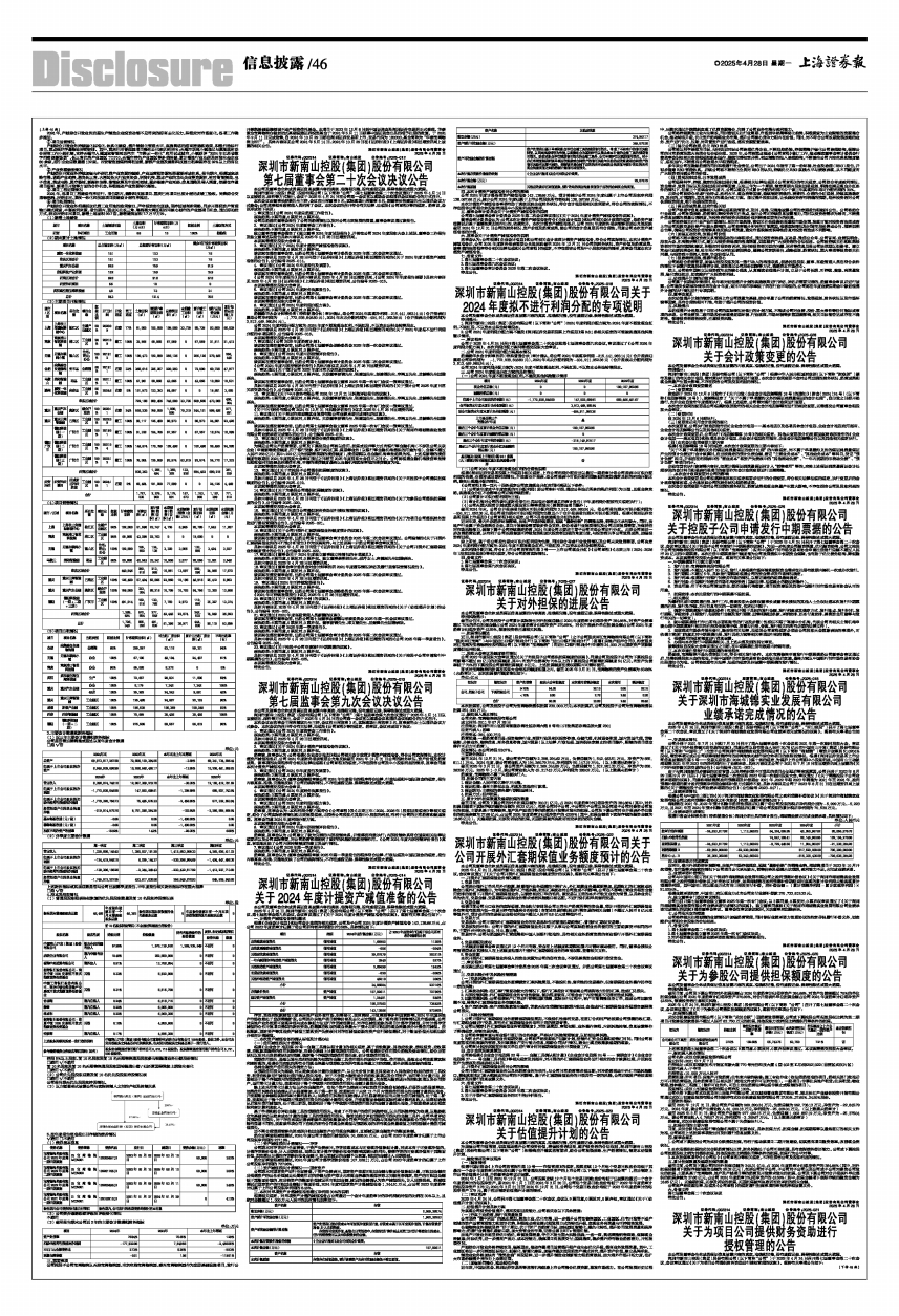 深圳市新南山控股(集团)股份有限公司(以下简称“公司”)第七届董事会第二十次会议通知于2025年4月14日以直接送达、邮件等方式发出,会议于2025年4月24日在公司第一会议室以现场会议和通讯会议相结合的方式召开。