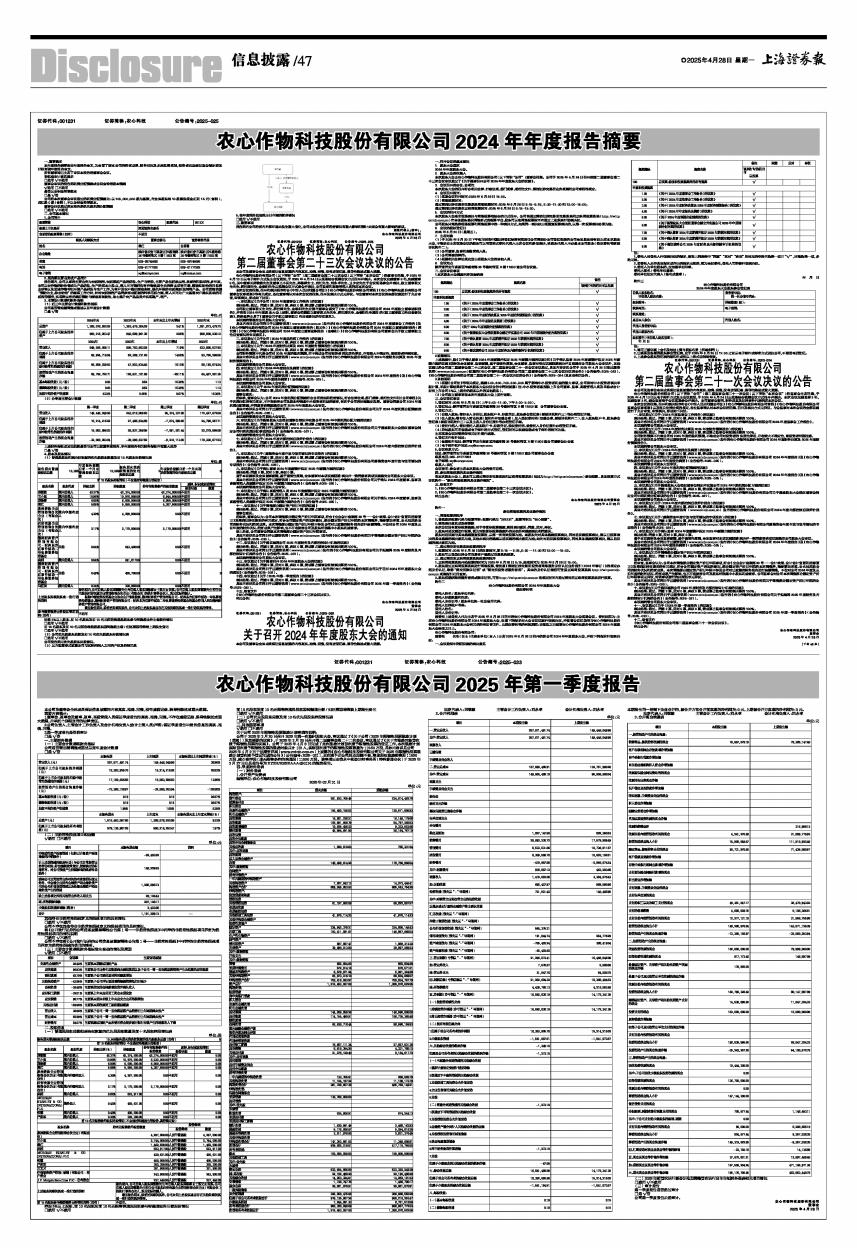 具体内容详见公司同日于巨潮资讯网(www.cninfo.com.cn)发布的《农心作物科技股份有限公司2025年第一季度报告》(公告编号:2025-033)。