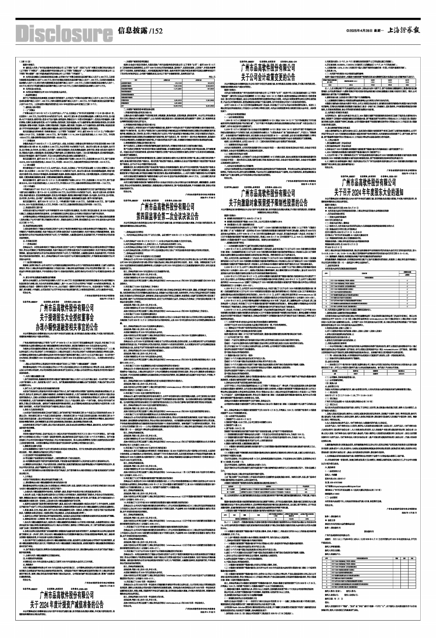 本次提交股东大会审议的议案已经公司第四届董事会第二次会议和第四届监事会第二次会议审议通过,相关公告内容详见公司于2025年4月28日在上海证券交易所网站(www.sse.com.cn)及《中国证券报》《上海证券报》《证券时报》《证券日报》披露的相关公告。公司将于2024年年度股东大会召开前,在上海证券交易所网站登载《广州市品高软件股份有限公司2024年年度股东大会会议资料》。