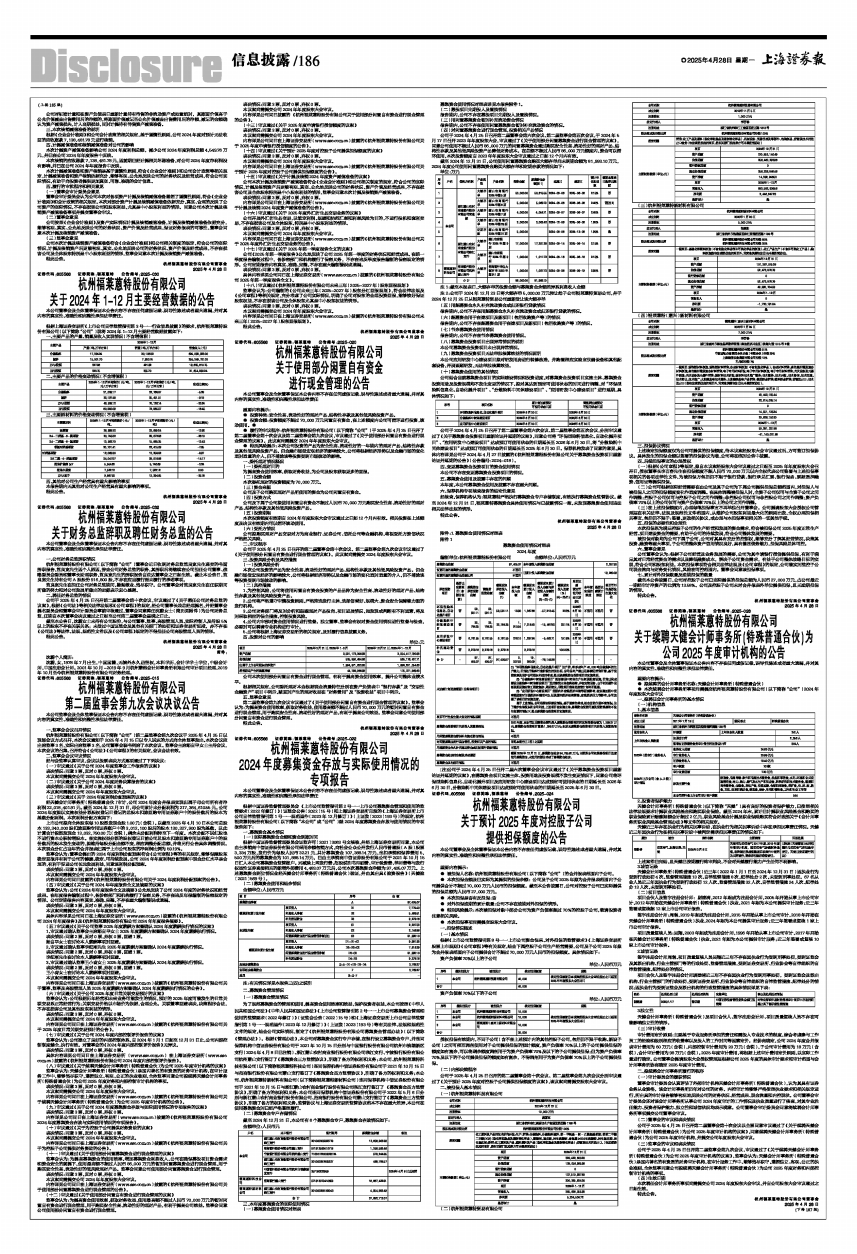 内容详见公司同日在上海证券交易所(www.sse.com.cn)披露的《杭州福莱蒽特股份有限公司关于续聘天健会计师事务所(特殊普通合伙)为公司2025年度审计机构的公告》。