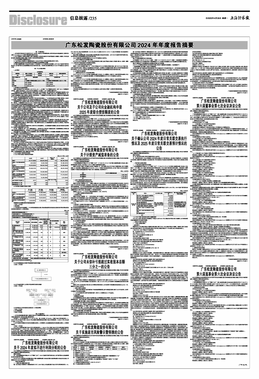 广东松发陶瓷股份有限公司2024年年度报告摘要