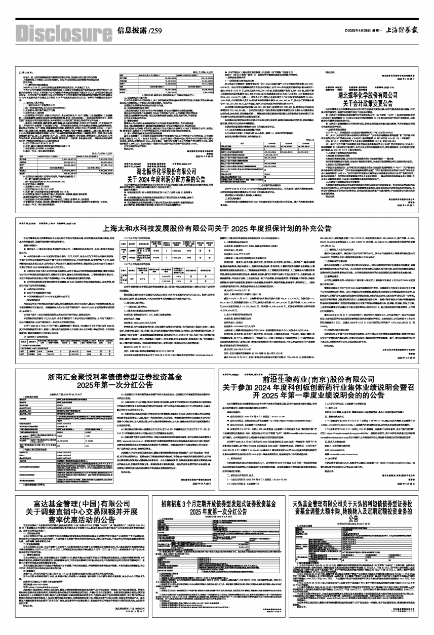 有关财务及更多信息详见公司于2025年4月26日在上海证券交易所网站(www.sse.com.cn)披露的《上海太和水科技发展股份有限公司2024年年度报告》。