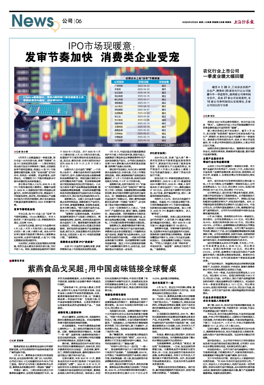 4月单月上会数量超过一季度总数、部分企业十天内注册生效、多家“消费类”企业IPO迎来实质性进展……上海证券报记者从投行及会计师事务所了解到,当前新股发审节奏明显提速,传递出A股IPO市场逐渐回暖的迹象,但谈“全面回暖”还为时尚早,有待进一步观察。在业界看来,这样常态化、可预期的IPO节奏对增强资本市场内在稳定性具有积极意义。