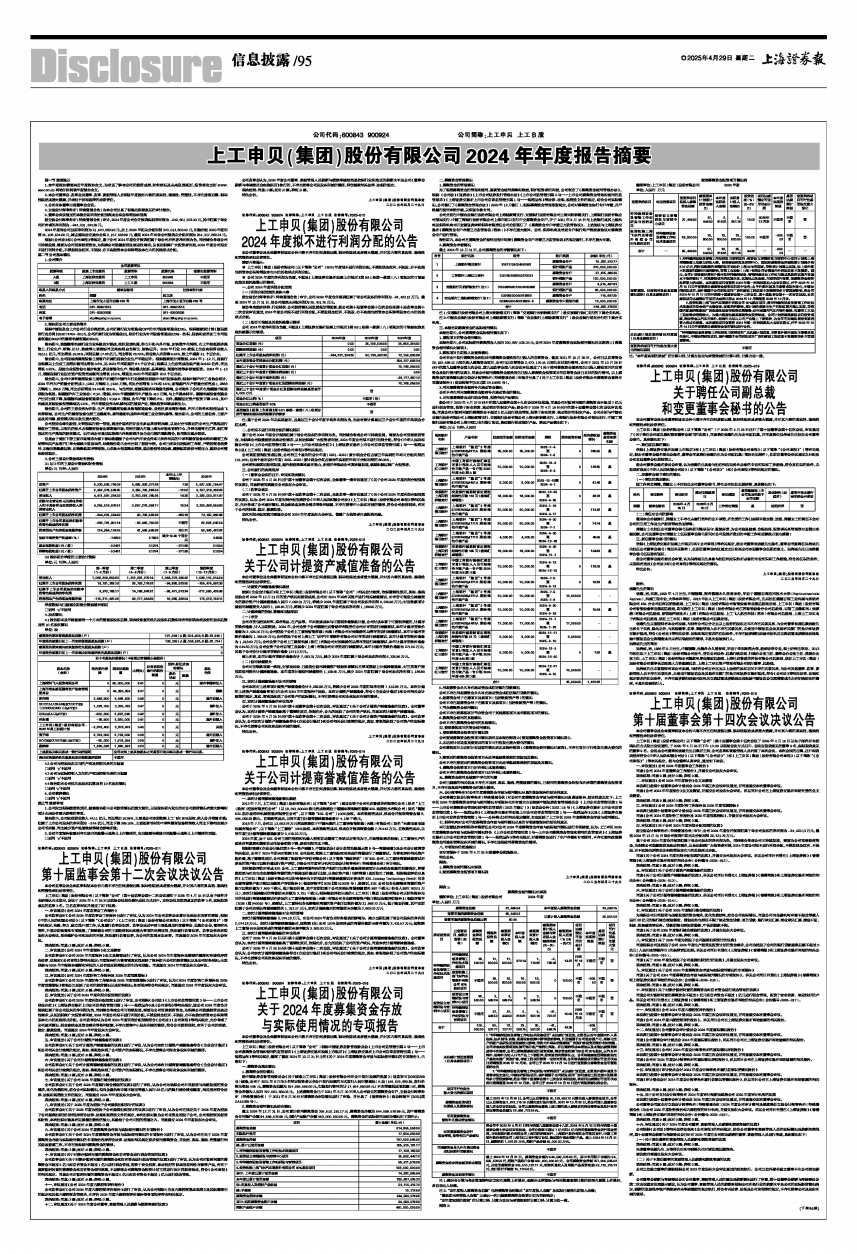 证券代码:600843 900924 证券简称:上工申贝 上工B股 公告编号:2025-019