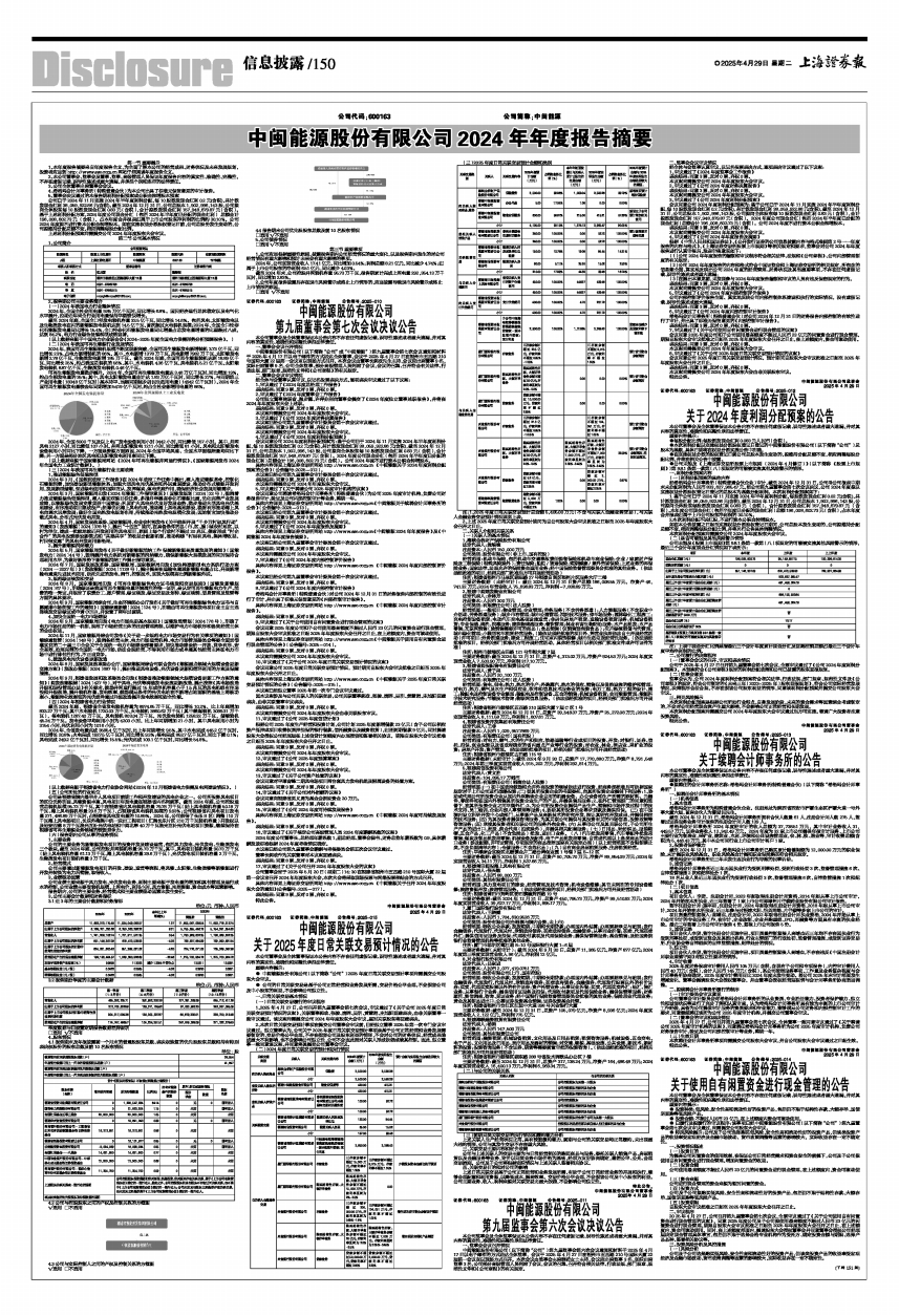 具体内容详见上海证券交易所网站http://www.sse.com.cn《中闽能源关于2024年度利润分配预案的公告》(公告编号:2025-012)。