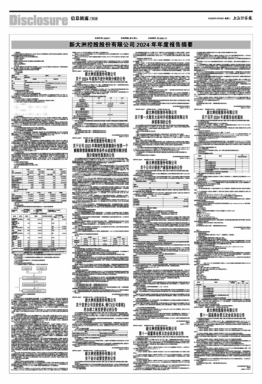 证券代码:000571 证券简称:新大洲A 公告编号:定2025-01