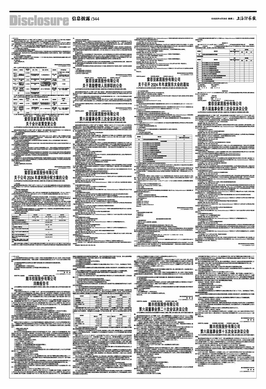 索菲亚家居股份有限公司(以下简称“公司”)于2025年4月27日召开第六届董事会第三次会议、第六届监事会第三次会议,审议通过了《关于公司2024年度利润分配方案的议案》,该议案尚需提交公司2024年年度股东大会审议通过后方可实施。
