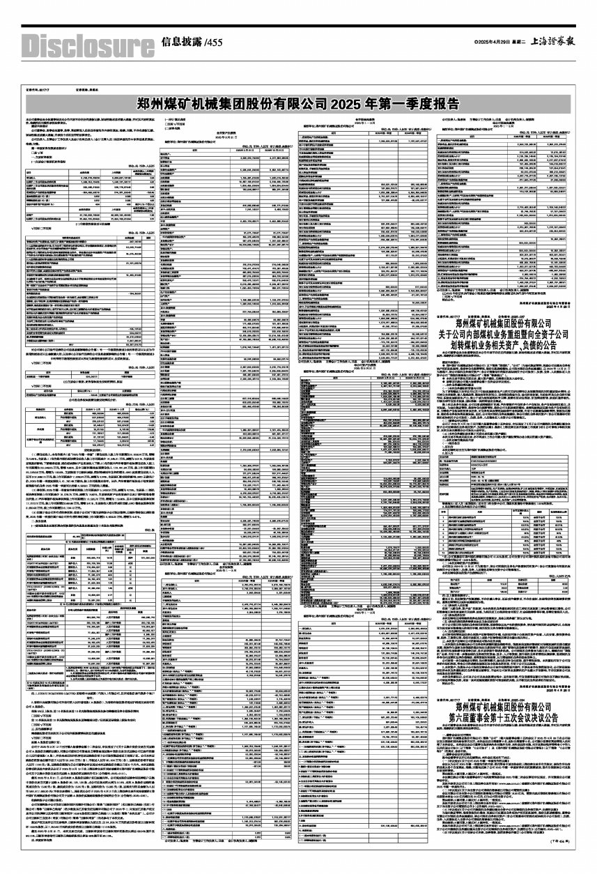 具体内容详见公司同日在上海证券交易所网站(www.sse.com.cn)披露的《郑州煤矿机械集团股份有限公司2025年第一季度报告》。