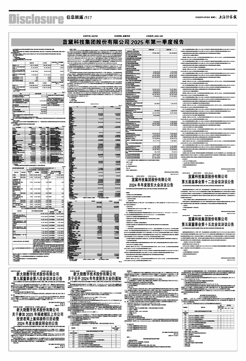 2025年4月18日,新大陆数字技术股份有限公司(以下简称“公司”)董事会以书面形式向各位董事发出召开公司第九届董事会第八次会议的通知,并于2025年4月28日以现场与通讯结合的方式,在公司会议室现场召开。会议应到董事5人(其中独立董事2名),实到5人。会议由董事长王晶女士主持,公司监事及高级管理人员列席了此次会议。会议的召集和召开程序符合《公司法》和《公司章程》的有关规定。