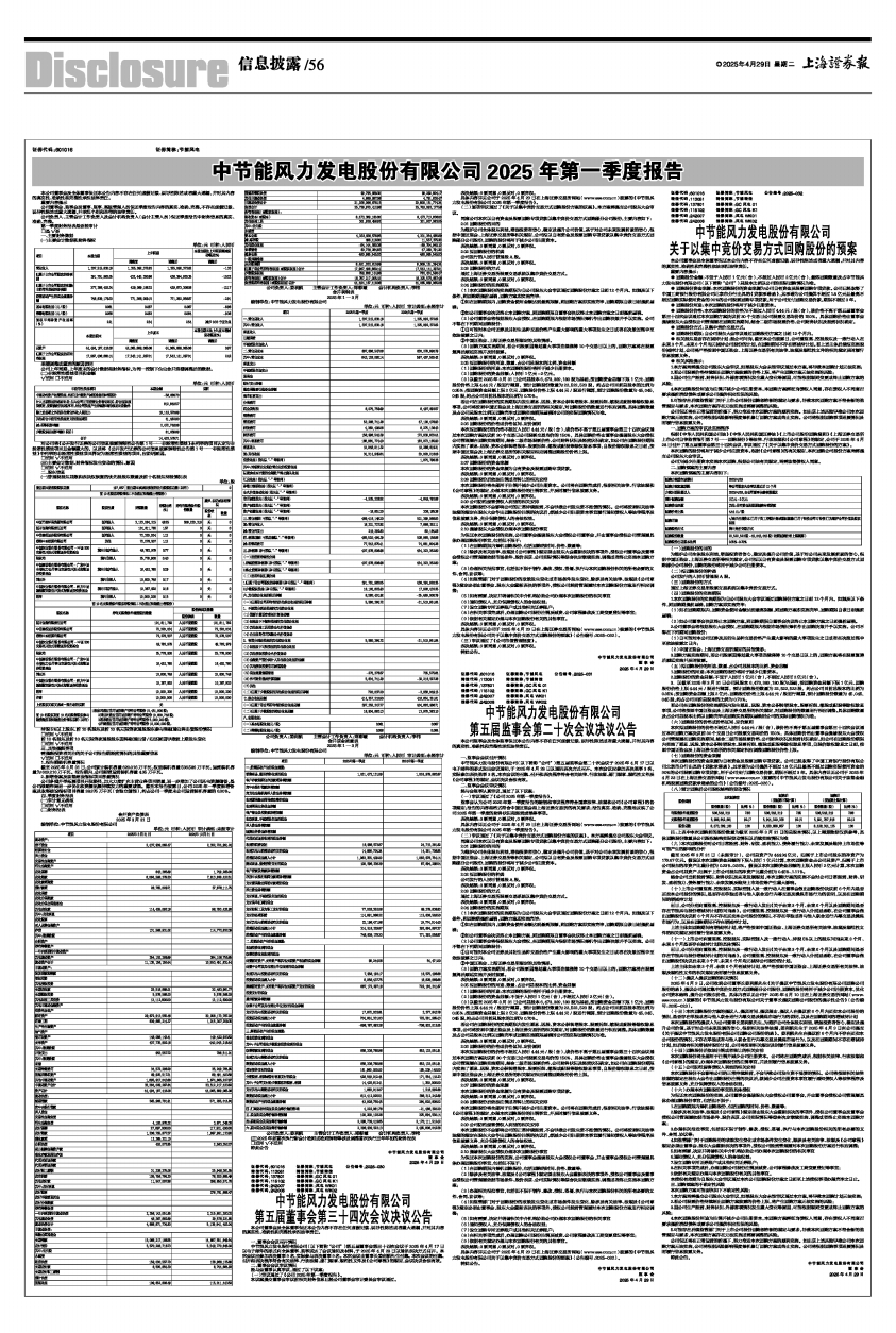 具体内容详见公司于2025年4月29日在上海证券交易所网站(www.sse.com.cn)披露的《中节能风力发电股份有限公司2025年第一季度报告》。